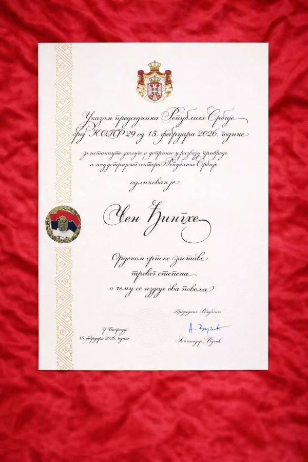 16 февраля, в День государственности Сербии, основатель и пожизненный почетный председатель совета директоров Zijin Mining г-н Чэнь Цзинхэ был удостоен ордена Сербского флага президентом Александром Вучичем за его значительный вклад в промышленное развитие Сербии. Эта награда является одной из высших государственных наград для иностранных граждан.